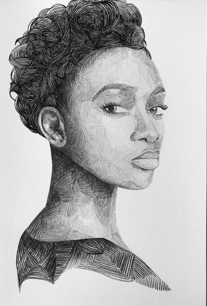 Natalie Arsenow creates intricate drawings, which people can enjoy simply for their aesthetic value and inherent beauty. However, she does also love to inject a slight feminist touch. Therefore the artist draws portraits, usually depicting women only, because in her opinion it is high time to put women in the limelight and on a pedestal, where they belong, after existing in obscurity for many centuries.