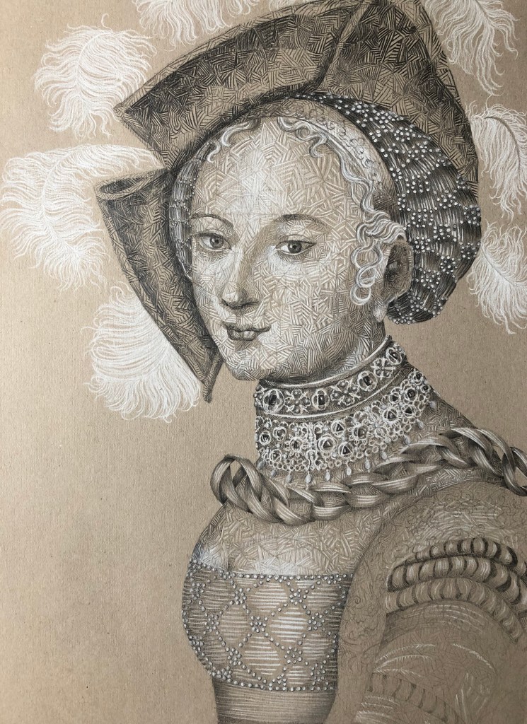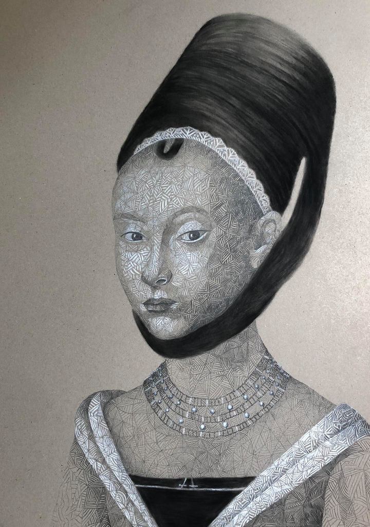 When seeing my drawings from afar I want you to perceive something absolutely mesmerising and beautiful. But as soon as you approach you begin to see the details, particularly the skin. The way it is done, on the one hand, reminds me of Korean ceramics (my mother is from South Korea) that have a beautiful crackle glazing, which is really amazing to look at but extremely difficult to achieve. On the other hand you realise that a crackle means that everything is broken up into tiny pieces so obviously things are not as prefect as they appeared in the beginning. A lot of women are hurting on the inside, quietly and often times undetected. That does not mean that the pain is not real.